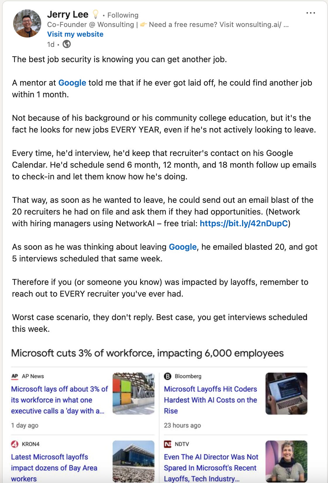 The best tip I could find about this situation? This LinkedIn post from Jerry Lee 💡 and his mentor at Google